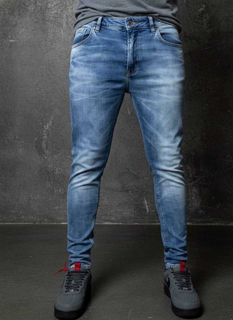 Lavagem Estonada (Light Wash): O tom azul claro com efeitos de clareamento traz um ar urbano e despojado, ideal para combinar com tênis ou botas. 👟