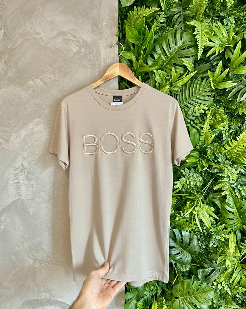 ✨ Logo em Relevo Premium: Apresenta a assinatura “BOSS” em alto-relevo bordado no peito, criando uma textura sofisticada que se destaca de forma sutil e luxuosa.