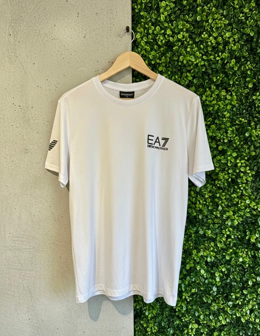 Eleve o seu conceito de moda casual com a pureza e o prestígio da EA7. Esta camiseta branca é a união perfeita entre a herança da alta costura italiana e o dinamismo do estilo esportivo de luxo, garantindo um visual clean e impactante.